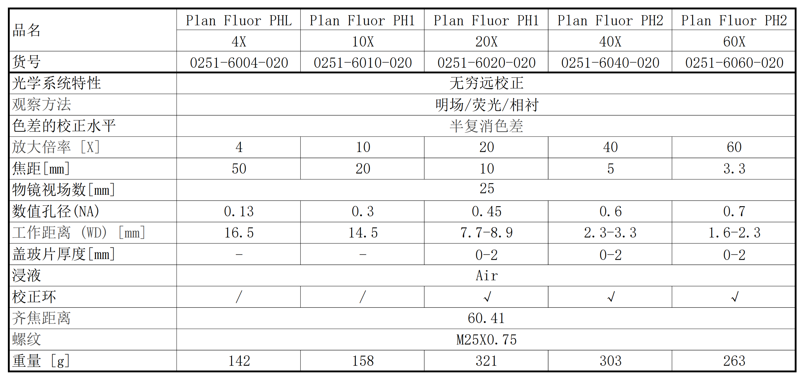• 无限共轭齐焦距离为 60mm 的生物物镜。