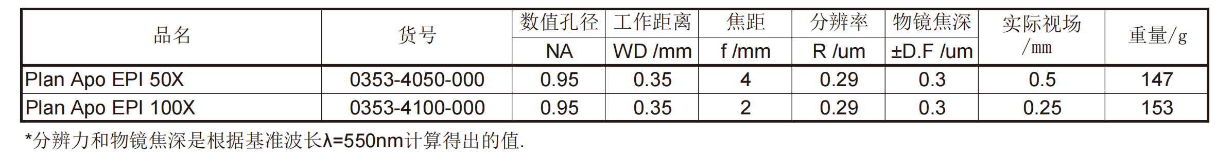 明视场观察物镜<br> Plan Apo EPI